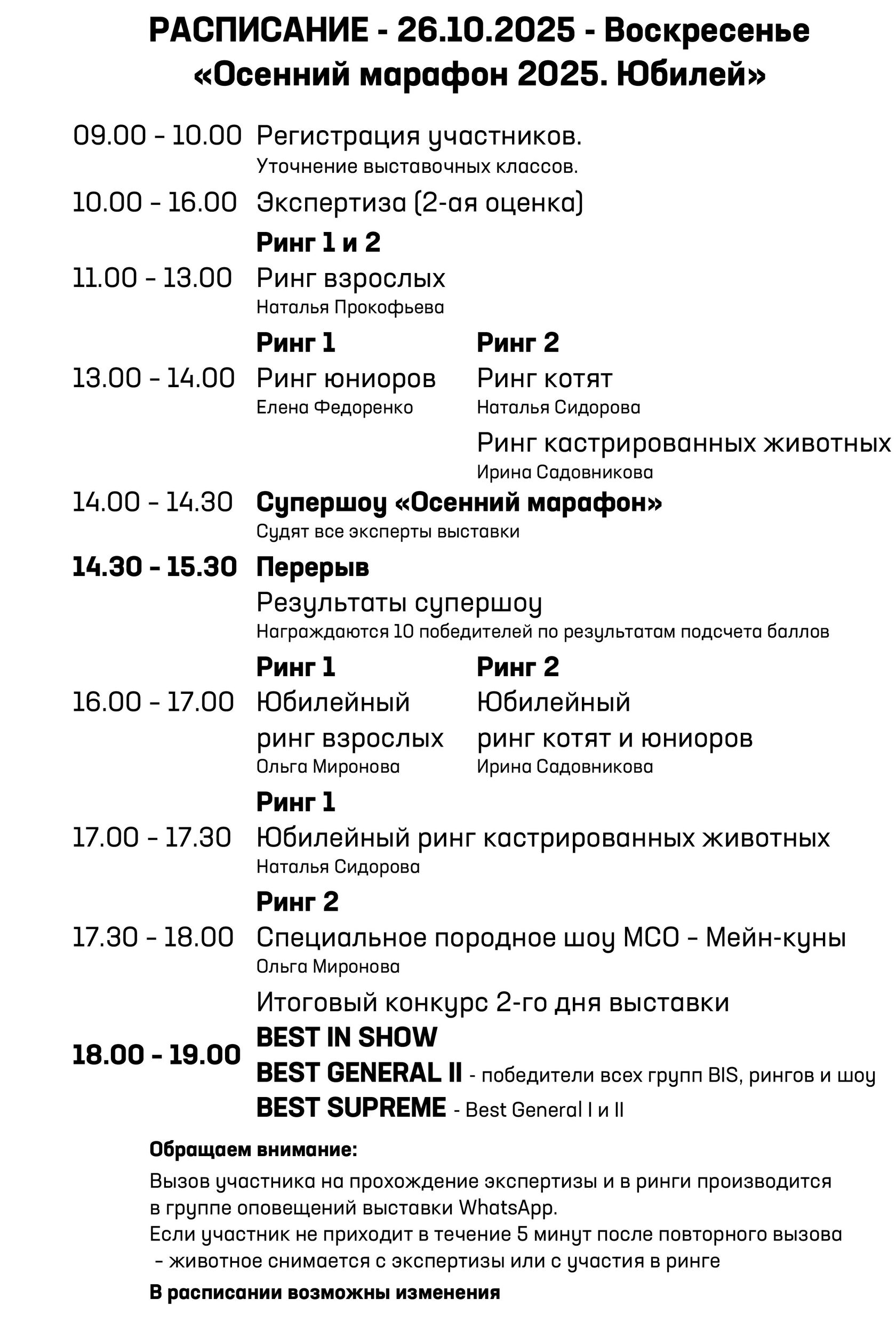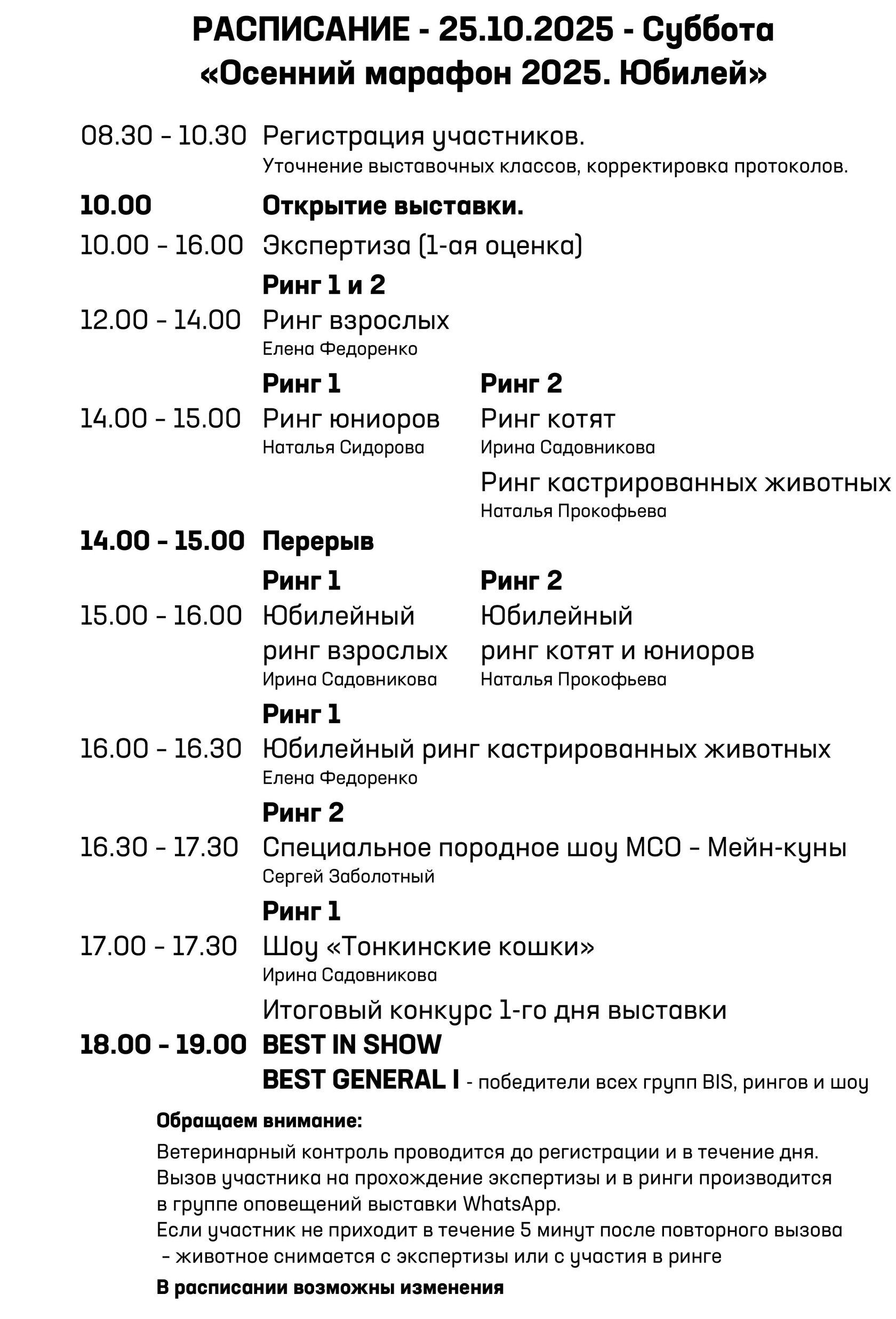К нам приедут плюшевые короткошёрстные британские кошки; очаровательные шотландские кошки с прямыми ушками и вислоухие с разным типом шерсти — длинношёрстные хайленды и короткошёрстные скотиши; добродушные великаны мейн-куны; кошки викингов норвежские лесные; инопланетные эльфы девон-рексы; утончённые каракулевые корниш-рексы; благородные и таинственные бурмы; кошки-белочки абиссинской породы; домашние леопарды — бенгальские кошки; королевские длинношёрстные персы и их короткошёрстные близнецы экзотические кошки; милые кукольные рэгдоллы; аристократичные искрящиеся русские голубые; нежные синеглазые тайские кошки; владельцы редких аквамариновых глаз тонкинкские кошки; коротколапые обоятельные манчкины; восточные короткохвостые меконгские бобтейлы.